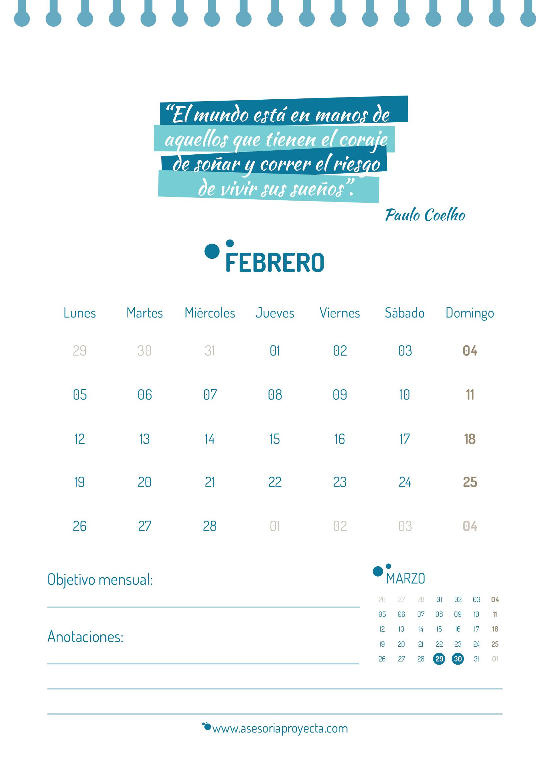 CALENDARIO 2018 febrero